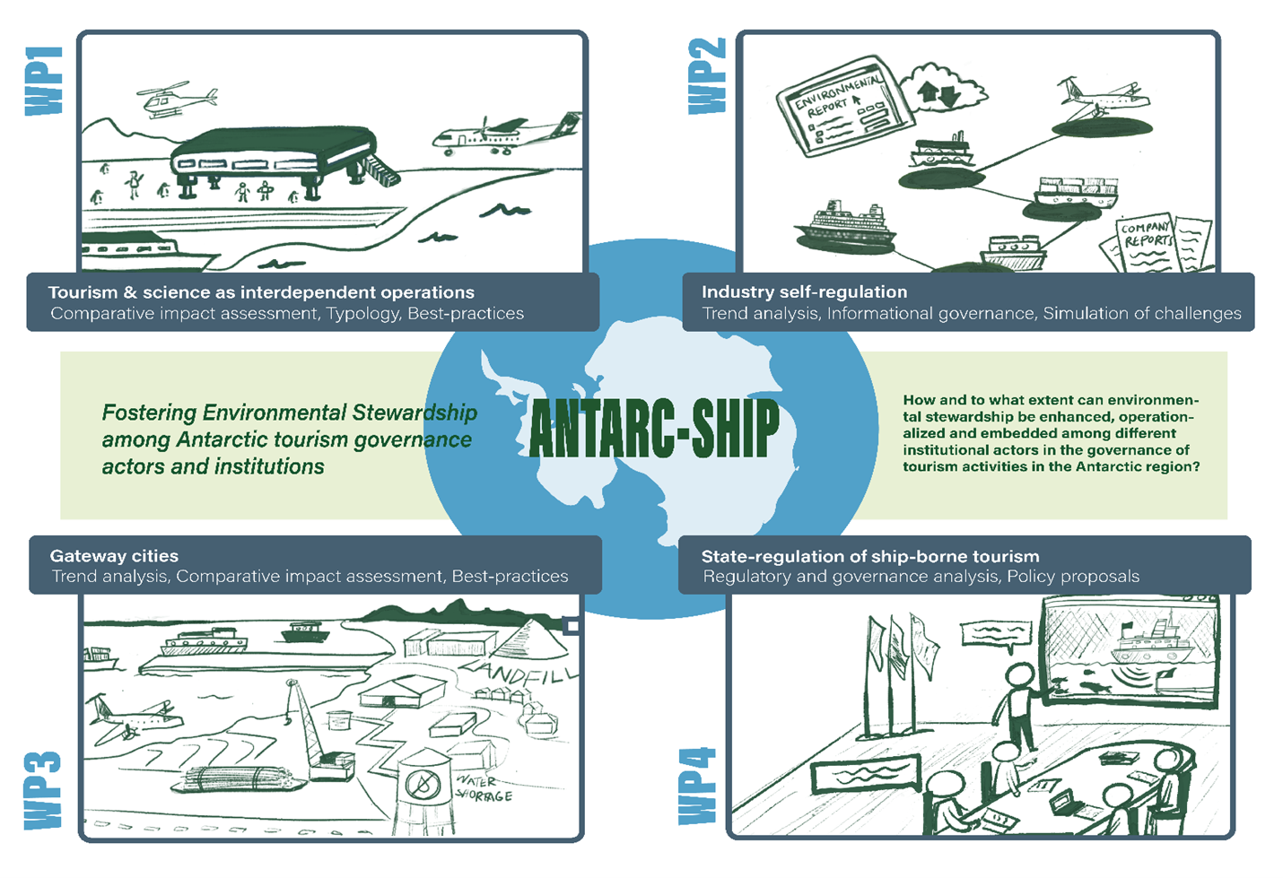 The aim of the ANTARC-SHIP project is to examine to what extent, and how, environmental stewardship can be assessed, enhanced, and facilitated among the different actors and institutions involved in the operation and governance of Antarctic tourism. Discover, in detail, the various work packages of this project.