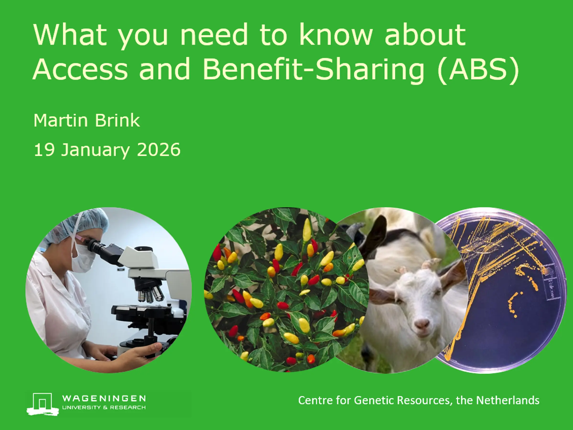 Presentatie 'What you need to know about Access and Benefit-Sharing (ABS)', gehouden op 19 januari 2026.